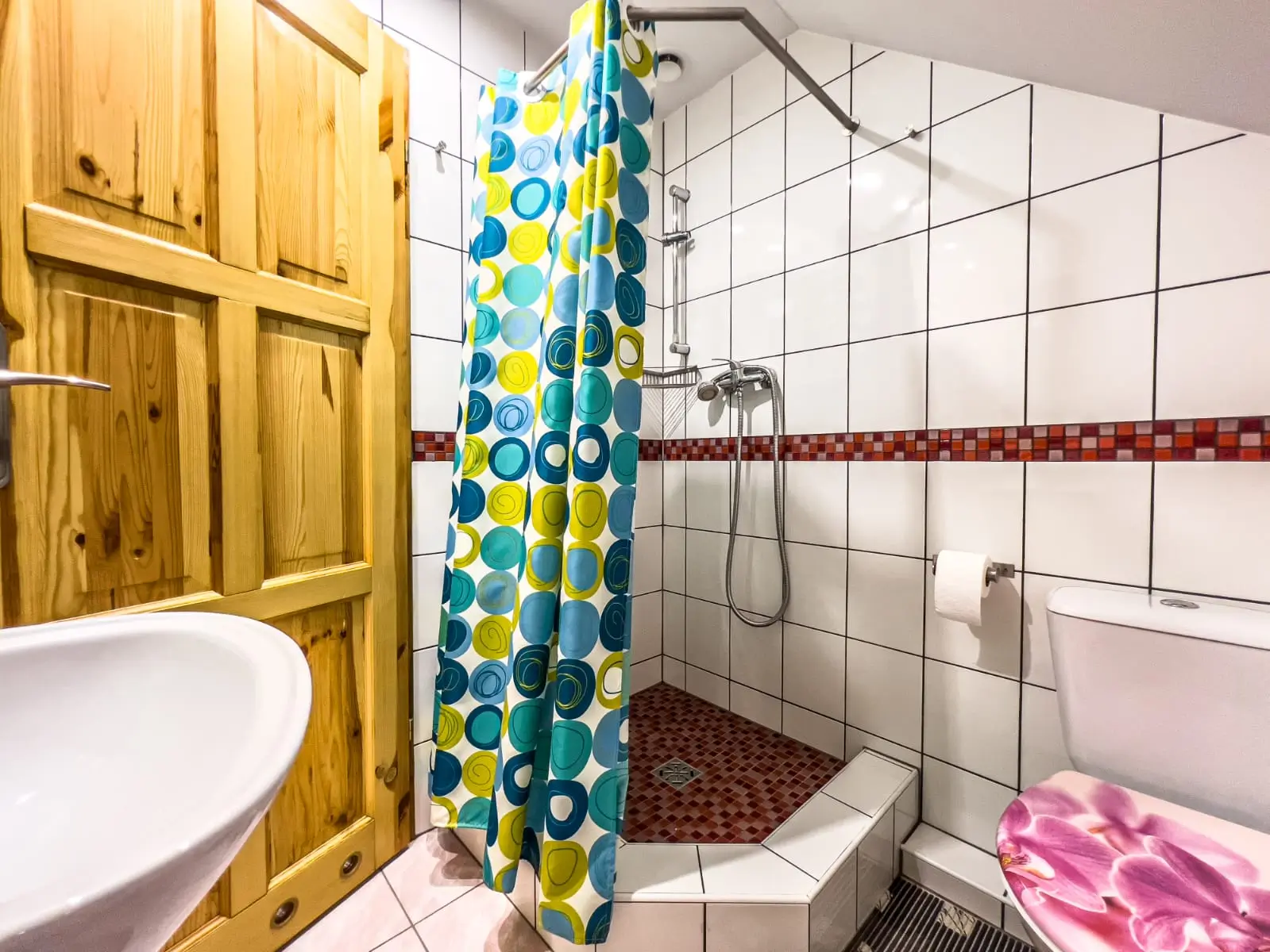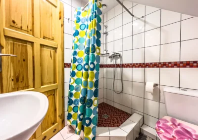 Łazienka z prysznicem i ubikacją.